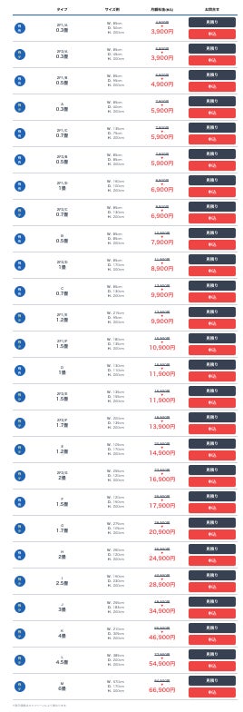 トランクルームってどのくらいの広さで、どの程度の荷物が収まるの?