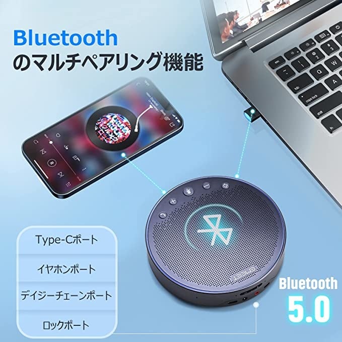 会議用マイクスピーカー Bluetoothスピーカーフォン 360˚全方向集音マイク 高感度マイク ハウリング抑制・ノイズのキャンセリング
