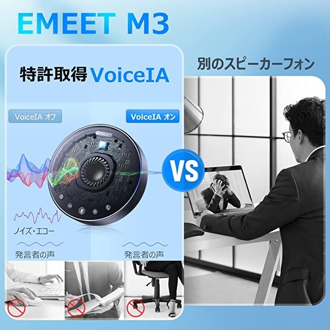EMEET M3 会議用マイクスピーカーは4つの全指向性集音マイクが搭載されて、360度全方位の音声をピックアップし、相手にクリアな音声を伝えることができます。高感度のサンプリングレートで、人声を高度に再生するうえ、 臨場感あふれるHD音質を体験できます。普通の低感度のスピーカーフォンに比べて、M3スピーカーフォンの音声復元能力が一層強く、リモート会議と感じられないぐらい、快適な会議体験を提供できます。