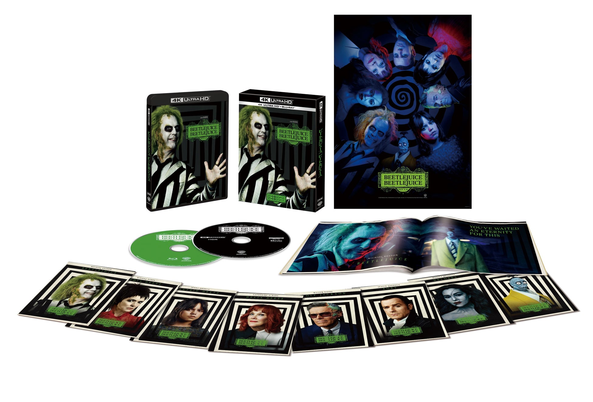 2025年1月22日(水)に発売となる、「【初回仕様】ビートルジュース ビートルジュース<4K ULTRA HD&ブルーレイセット>(2枚組/豪華封入特典付)」には、本編と映像特典を収録した4K ULTRA HDディスクとブルーレイディスクに加え、読み応え満載の36ページのブックレット、ビートルジュース(マイケル・キートン)やリディア(ウィノナ・ライダー)、アストリッド(ジェナ・オルテガ)らメインキャラクターたちが描かれたキャラクターカード(8枚組・両面仕様)、A3ポスターが、初回仕様限定の豪華特典グッズとして封入されます!さらに、合計78分超えとなる豪華映像特典と音声特典も収録!本作の舞台裏に迫るメイキングはもちろん、ストップモーション技術を駆使した撮影や、ビートルジュースとリディアの初めてのダンスシーンに迫った映像など見どころ満載の映像特典に加え、音声特典としてティム・バートン監督による音声解説も収録されます!まさに見るもよし、飾るもよし!本作の世界観がご自宅で存分に楽しめるファン垂涎仕様です!