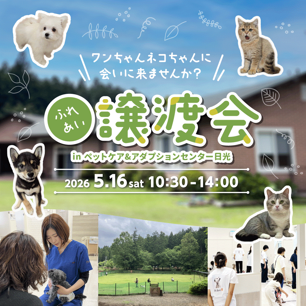 2026年5月16日(土)ペッツファーストグループ「ふれあい譲渡会」開催のお知らせ in ペットケア&アダプションセンター日光