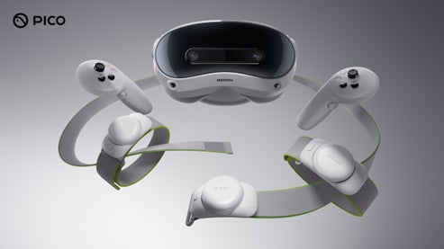 今回のイベントではVR(バーチャルリアリティ)とMR(ミックスドリアリティ)を両方体験できるゴーグル「PICO 4 Ultra」と両足首に装着するモーショントラッカー「PICO Motion Tracker」の体験展示を行います。