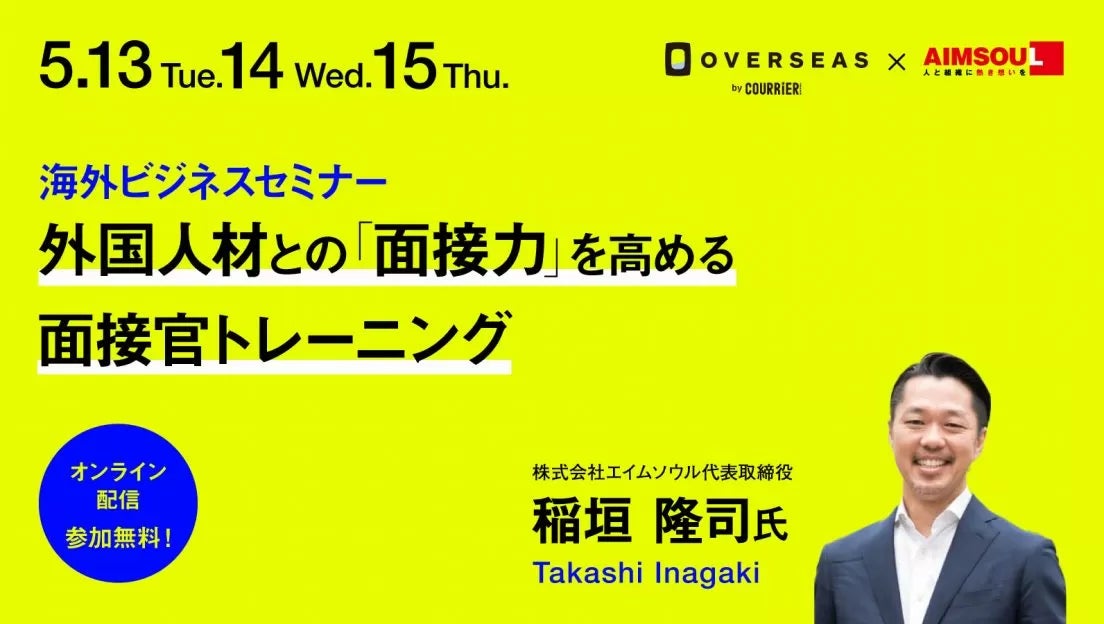 外国人採用に特化した適性検査CQI等を手掛ける株式会社エイムソウル(本社:東京都台東区、代表取締役:稲垣 隆司)は、クーリエ・ジャポンとのコラボイベントとして無料動画『外国人材との面接力を高める面接官トレーニング』を公開開始しました。