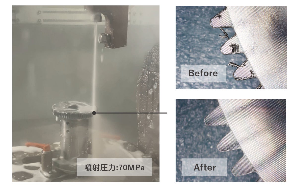 当社は2023年にバリ取りの自動化を研究する「デバラボ」*³を設立し、バリ取りに関するお客様の課題を共に解決する取り組みを行っています。ウォータージェットを用いたバリ取りは自動車部品、精密機器部品、医療機器部品など、さまざまな業界から以前から高いニーズがあり、新規導入を検討するためのバリ取りテストの依頼も多くいただいております。