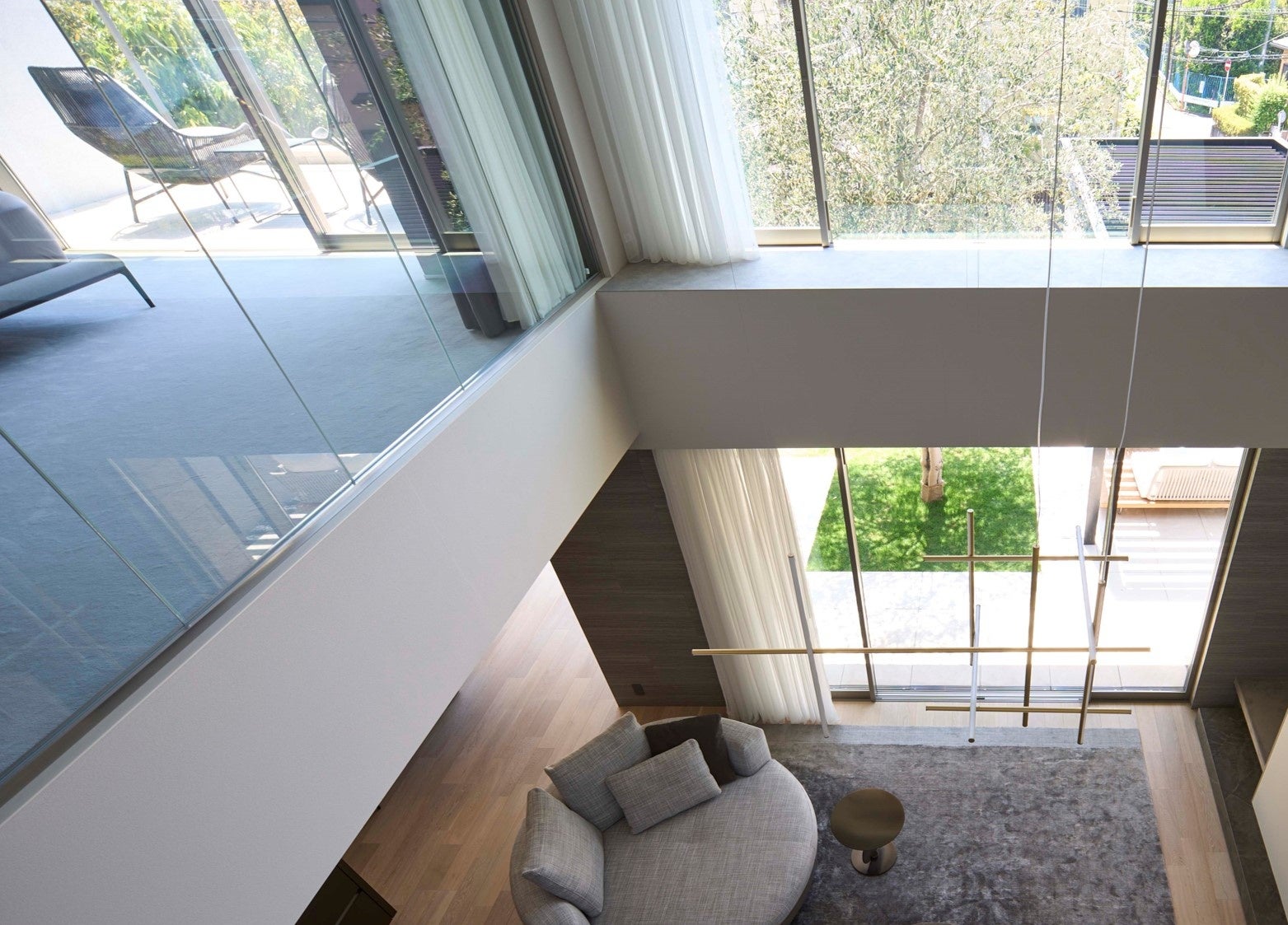 オリーブの大樹の横に設えられたアウトドアリビングが非常に気持ち良さそうである。日常的に庭で時間を過ごしてほしいという設計者の思いが、室内と段差無く繋がる庭や、アウトドアリビングを実現させている。外で過ごす時間を長くすることで自然との繋がりだけでなく近隣との繋がりや地域への愛着を育もうとしている点も評価できる。室内の設計もオリーブを囲んだ配置とし、常に緑を感じられるように配慮されているのも良い。