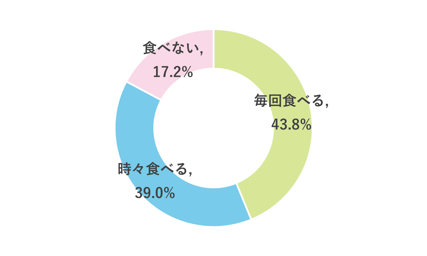 全国の中学生男女500名を対象に、「塾前食」(塾の前に食べる軽食)をとるか質問したところ、82.8%が「食べる」(毎回食べる:43.8%、時々食べる:39.0%)と回答しました。8割以上の中学生が何かしらの塾前食を食べてから、通塾していることがわかりました。