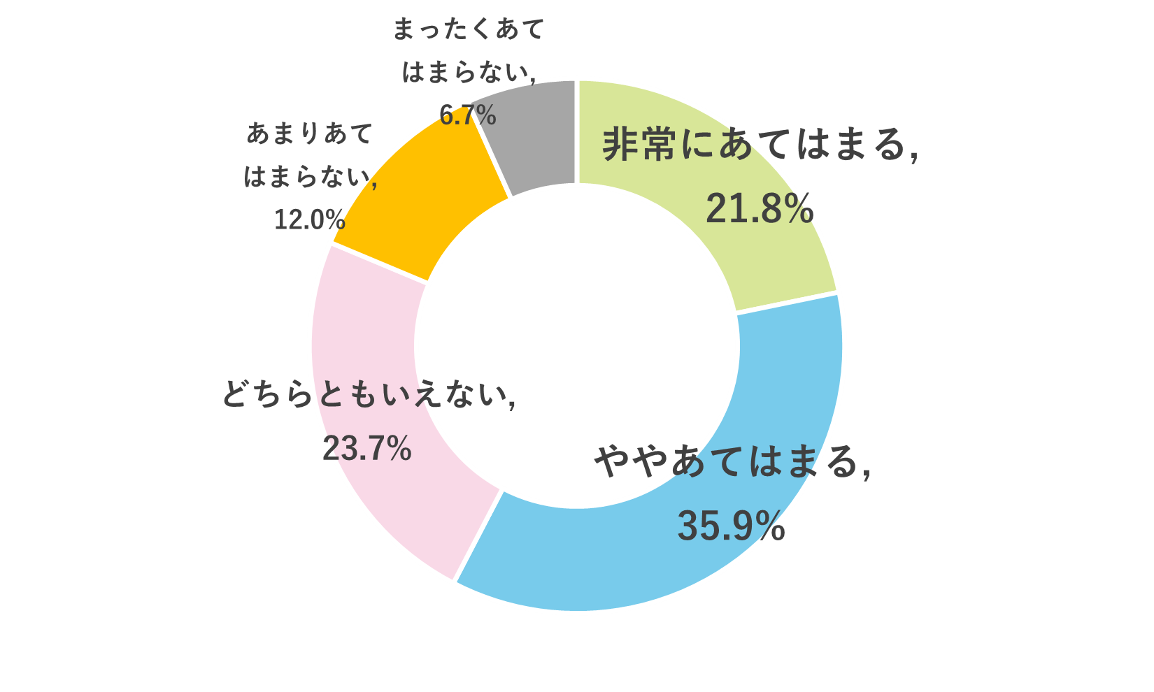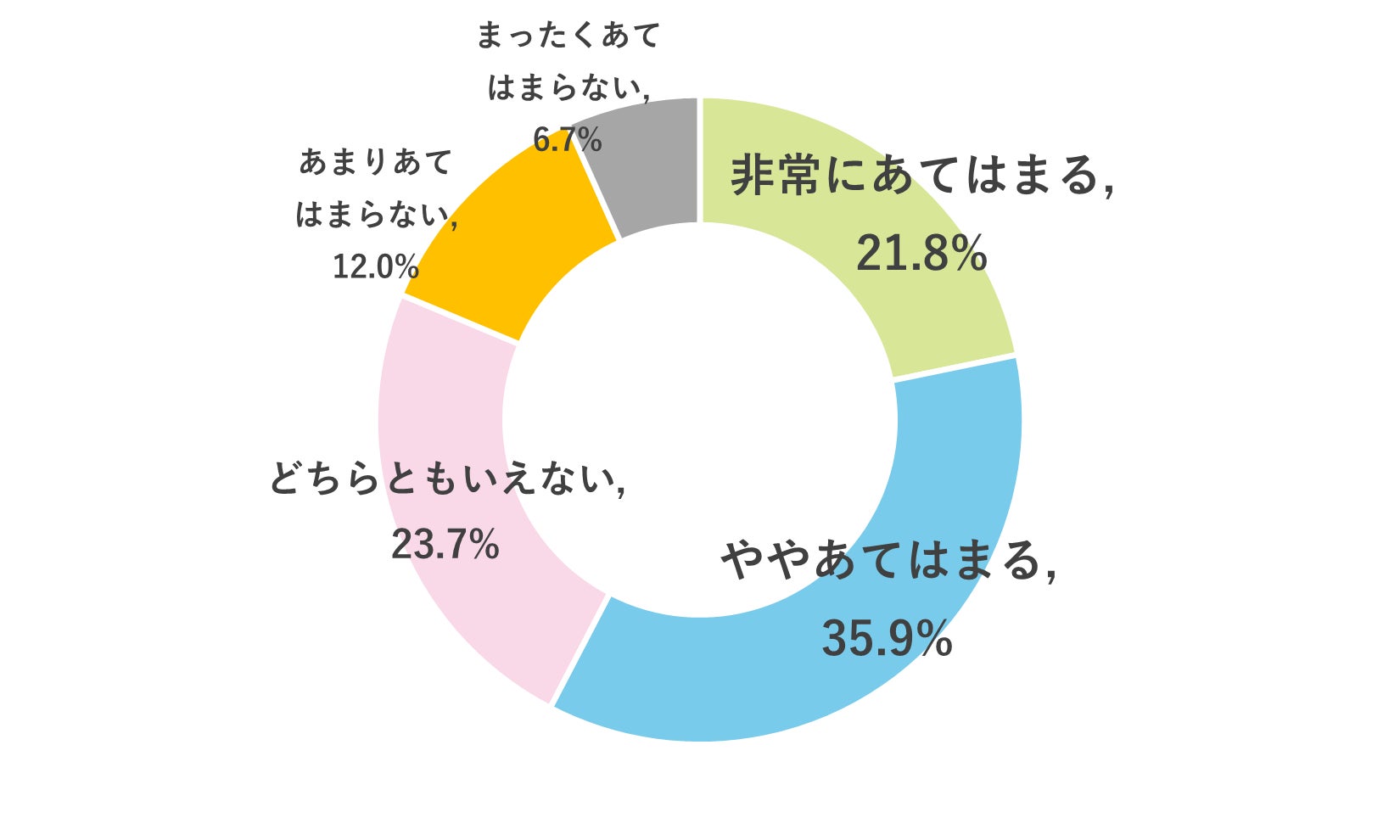 続いて、中学生の子どもを持つ全国の保護者(女性)435名を対象に、塾前食の用意を子どもに任せると、栄養バランスが悪くならないか心配か質問したところ、57.7%が「心配」(非常にあてはまる:21.8%、ややあてはまる:35.9%)と回答しました。