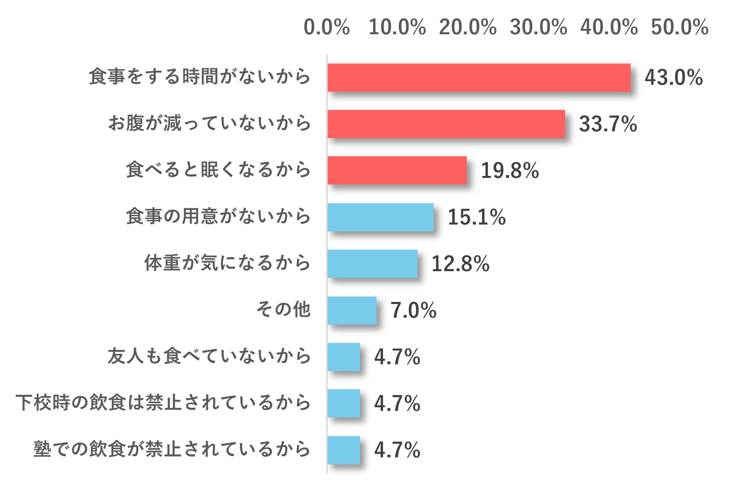 ・塾前食を食べない理由、最多回答は「食事をする時間がないから(43.0%)」
