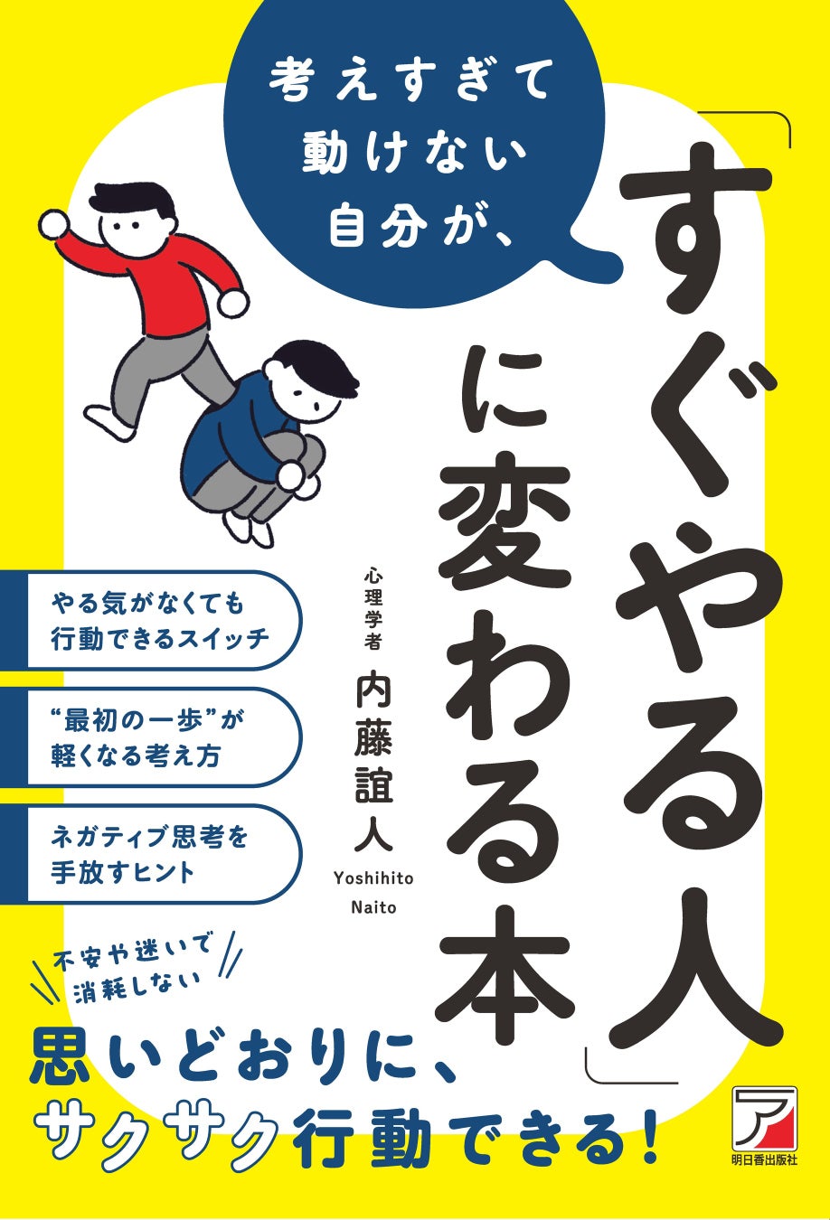 明日香出版社(東京都文京区)は9月12日(木)に、新刊『考えすぎて動けない自分が、「すぐやる人」に変わる本』(著・内藤 誼人)を発売いたします。