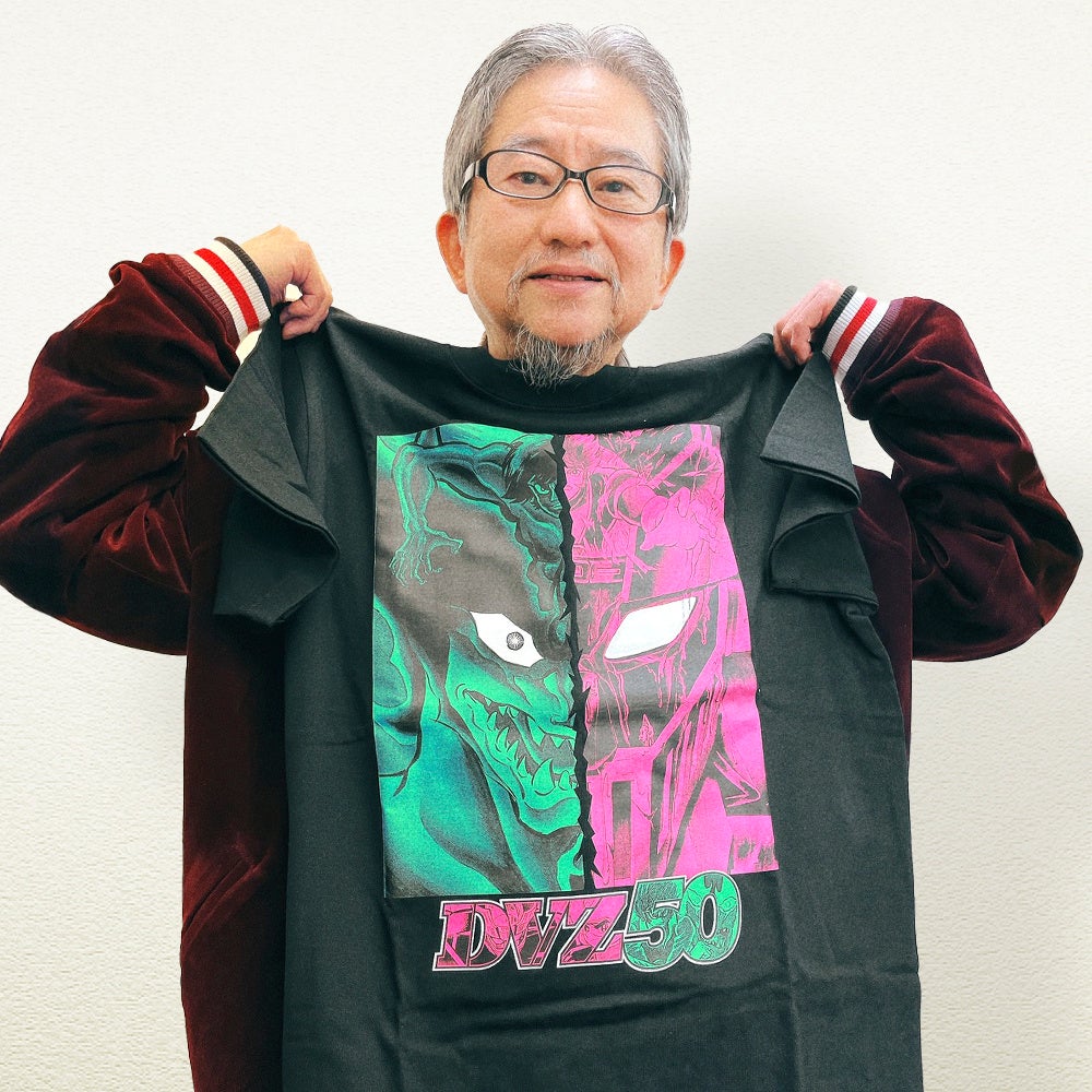 デビルマンとマジンガーZ、不動明と兜甲児が対峙する歴史的デザイン。記念すべき「DVZ50」公式Tシャツ