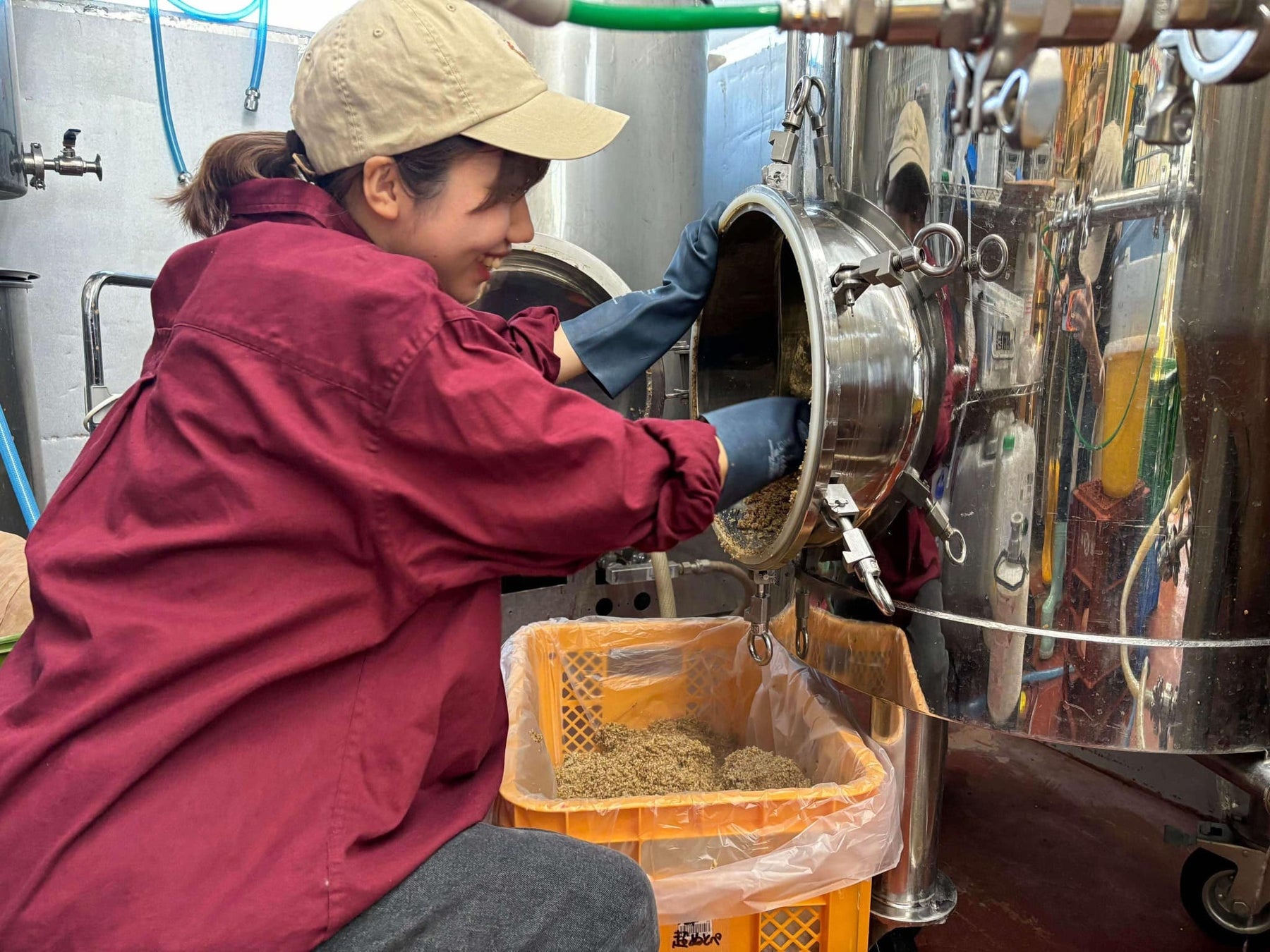醸造を指揮したのはぬとりビールで醸造を始めて一年目のカリンさん。バレンタインビール「ぬとりバレンタイン」は、ぬとりブルーイングの女性ホールスタッフを束ねながら、カリンさんが初めてレシピを造りました。