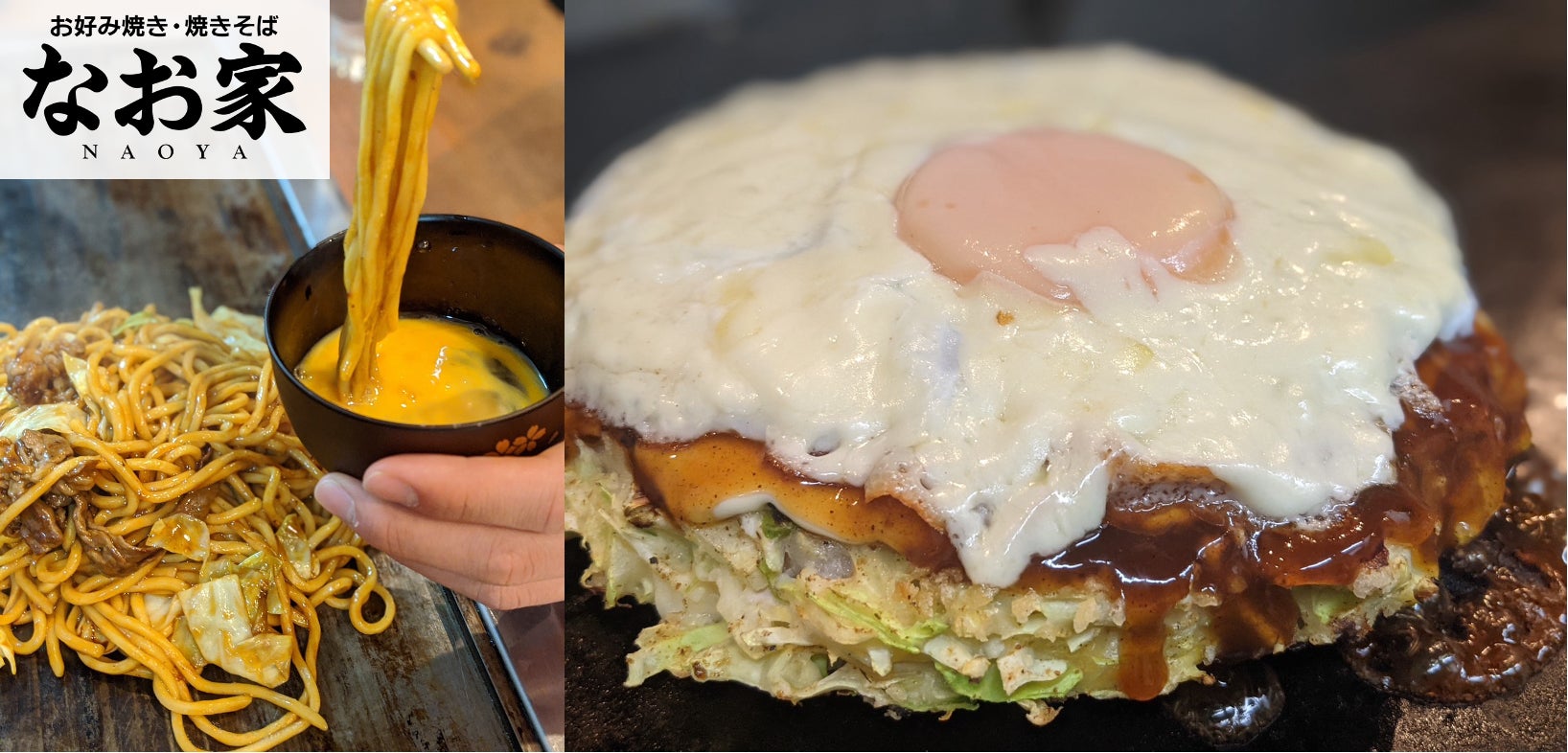 2025年3月22日(土) OPEN!元芸人の店主が、お好み焼き屋を営む祖父の姿に憧れオープンした【お好み焼き なお家】。キャベツの仕入れ先・カットの幅・仕込みまで徹底的にこだわった生地は、ふんわり食感と天かすぎっしりのサクサクな仕上がりが絶品です!粉もんのほか、名物「カレー焼きそば」もおすすめ◎