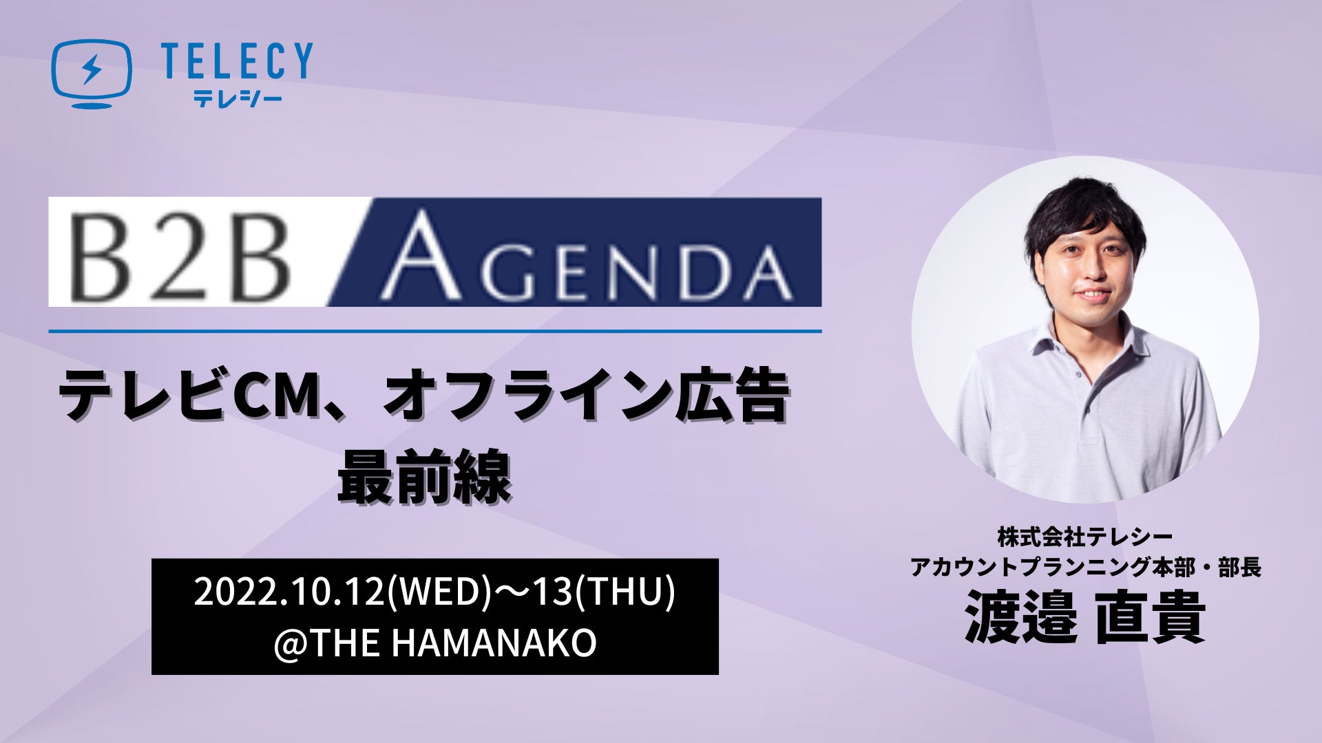 また、イベント2日目にあたる10月13日には、株式会社テレシー アカウントプランニング本部・部長 渡邉が、「テレビCM、オフライン広告最前線」について講演する予定です。