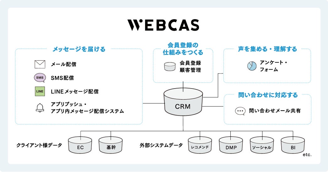 今回、支援業務系ASP・SaaS部門で「サービス連携賞」を受賞した「WEBCAS」は、企業と顧客の“双方向コミュニケーション”を多様なチャネルで実現できるCRMアプリケーションソフトウェアシリーズです。
