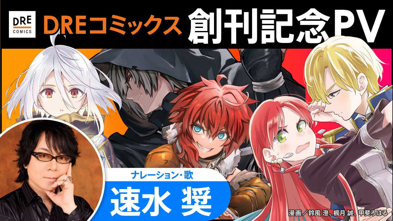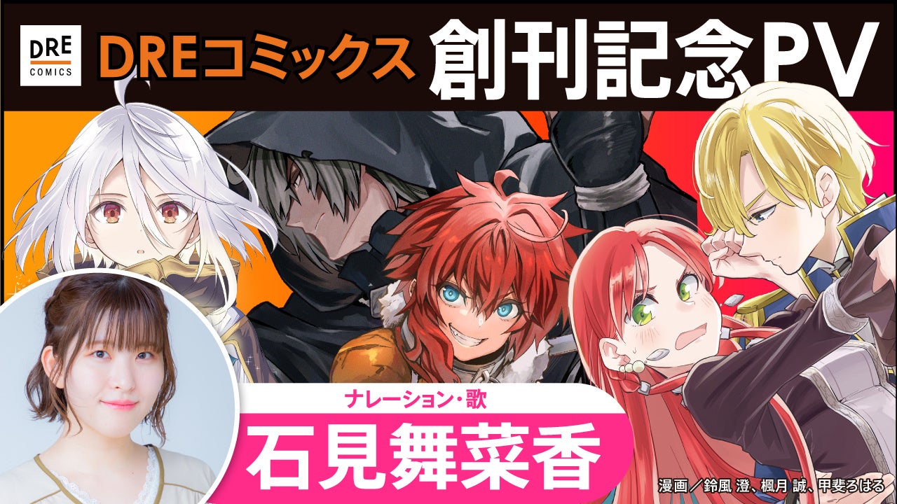 DREコミックスの創刊を記念して、速水 奨さん、石見舞菜香さん豪華キャストのお二人がナレーター・歌い手として出演する特別PVを公開いたします。さらに、連載作品のキャラクターボイスとして、佐倉綾音さん、古川 慎さん、内田真礼さん、楠木ともりさんにもご参加いただきました。一度聴いたらクセになる!?「ドリコムのうた」と共に創刊記念PVをお楽しみください。