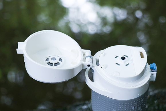 「Aozora」の蓋上部はUVC光ボタンになっており、水を入れたら2秒間長押しするだけで除菌開始!