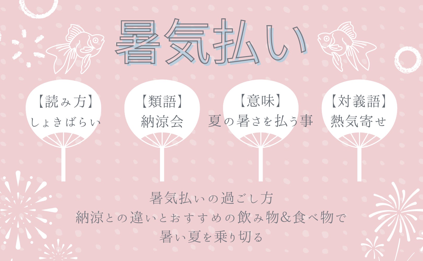 暑気払いは、文字の通り暑さを打ち払うものです。最近でも夏場に飲み会をすることを暑気払いと呼ぶ年配の人も多いかもしれません。