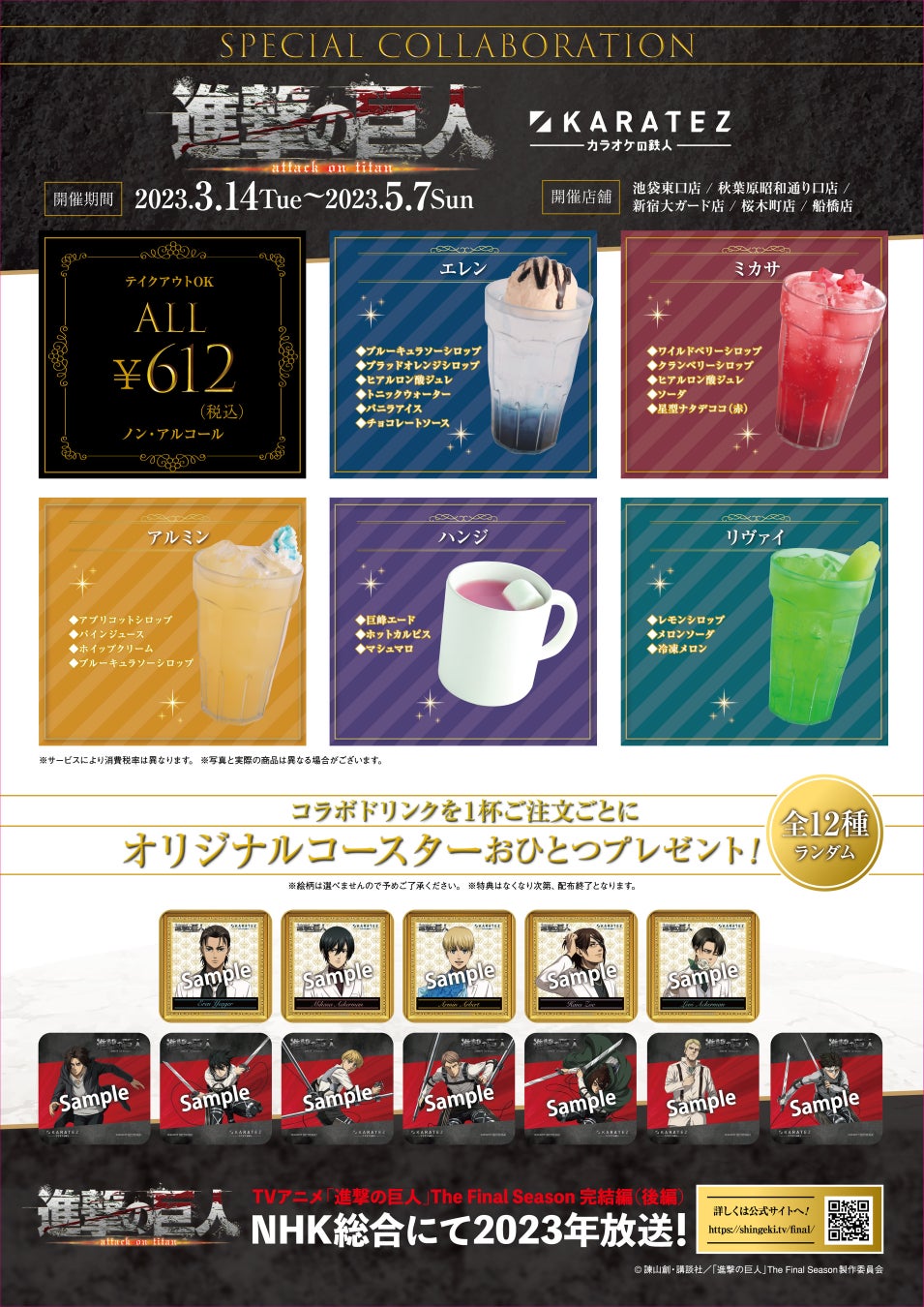 2023年3月14日から開催!TVアニメ「進撃の巨人」The Final Season 完結編 ×カラオケの鉄人 コラボレーションキャンペーンのお知らせ
