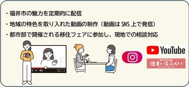 インフルエンサーではなく、移住を考えている方や移住された方と近い立場として、福井に興味を持つ方と福井をつなげ、移住・定住のハードルをそっと取り除く存在です。