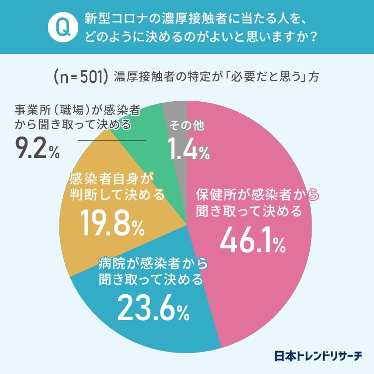 「その他」と回答した方からは、「どこか1つが決めると負担が大きいので、全ての複数の機関が協力して感染者や濃厚接触者を特定するべき」という意見がありました。