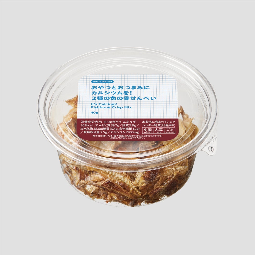 スナック感覚で手軽にカルシウム補給!サクサク食感が癖になる!累計400万個発売※と大人気の海鮮系珍味シリーズ第2弾「おやつとおつまみにカルシウムを!2種の魚の骨せんべい」