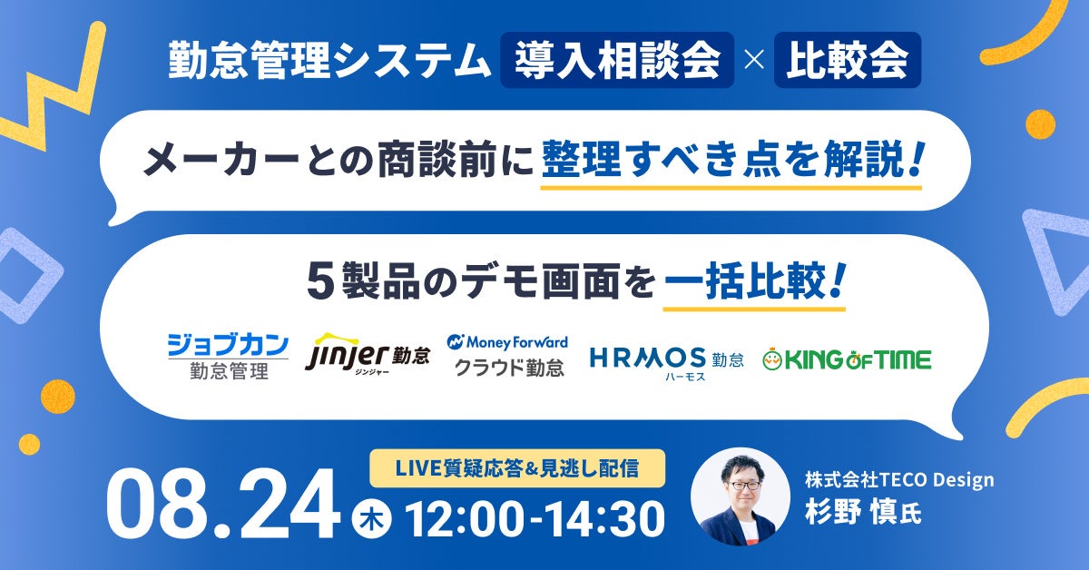 「これから勤怠システムを導入したい」とお考えのご担当者様、効率的に各メーカーの情報を集めたいご担当者様は、ぜひご参加ください。