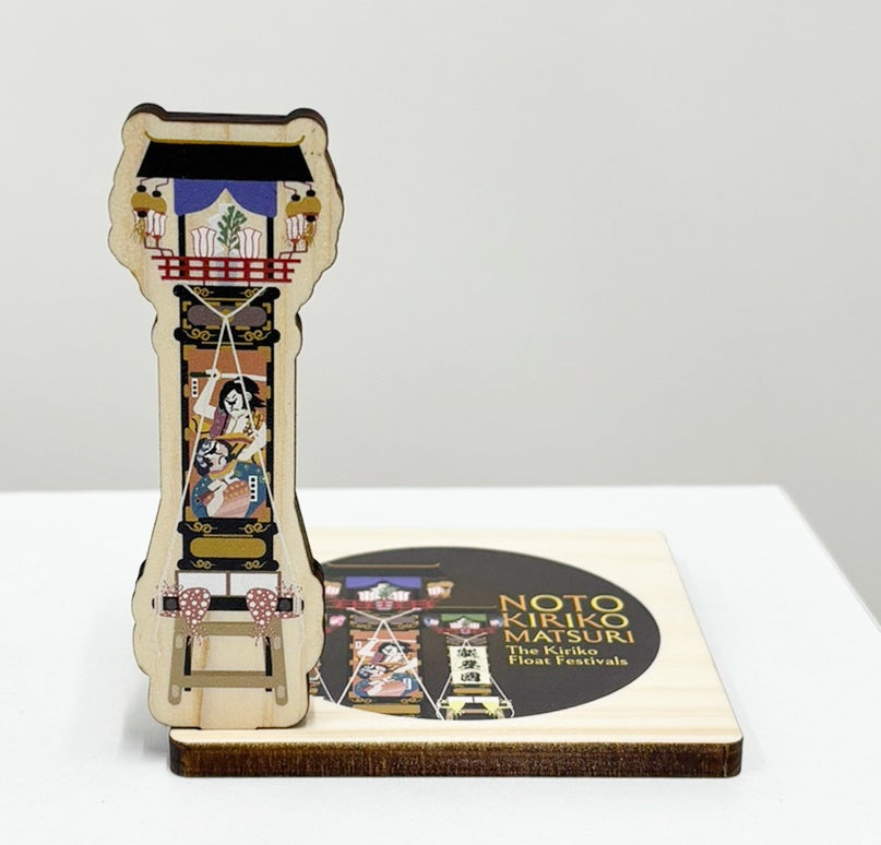 キリコの形にかたどったしおり。「kome-kami」という、廃棄されるお米を混ぜ込んだアップサイクル紙を使用しています。