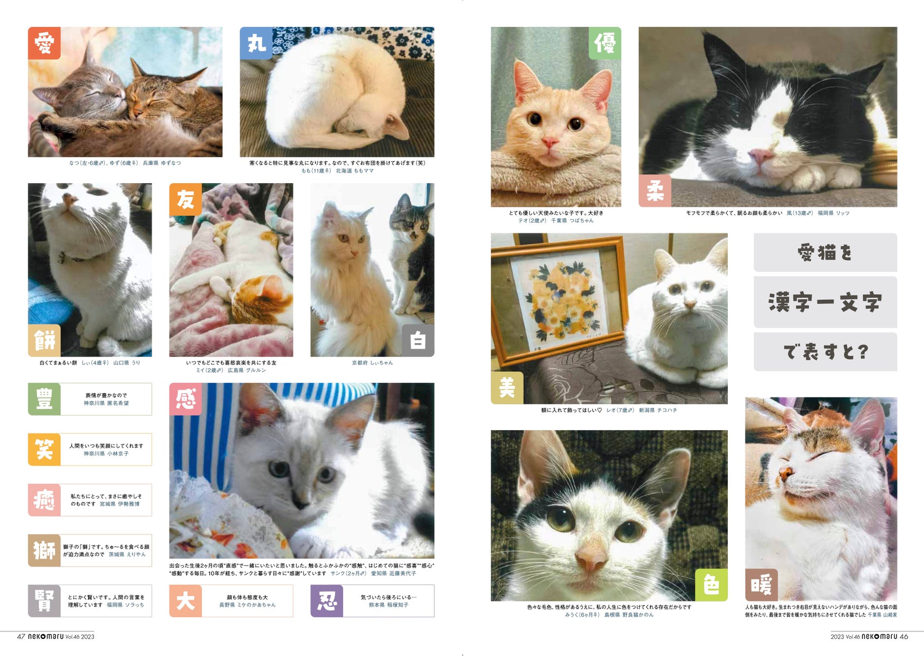 その他にも、第36回「ネコまる大賞」の発表や、子猫のときからの成長っぷりが楽しめる「猫ばけちゃった!」のコーナー、猫への想いを綴った心温まるエッセイや、くすっと笑えるエピソードなど、投稿コーナーも見どころ満載です。