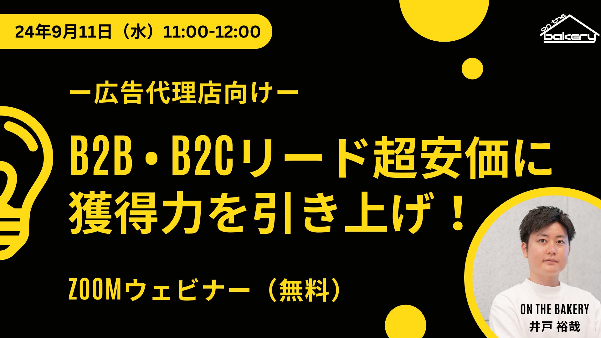 セミナー名:【広告代理店向け】BtoB・BtoCリード 超安価に獲得力を引き上げ!