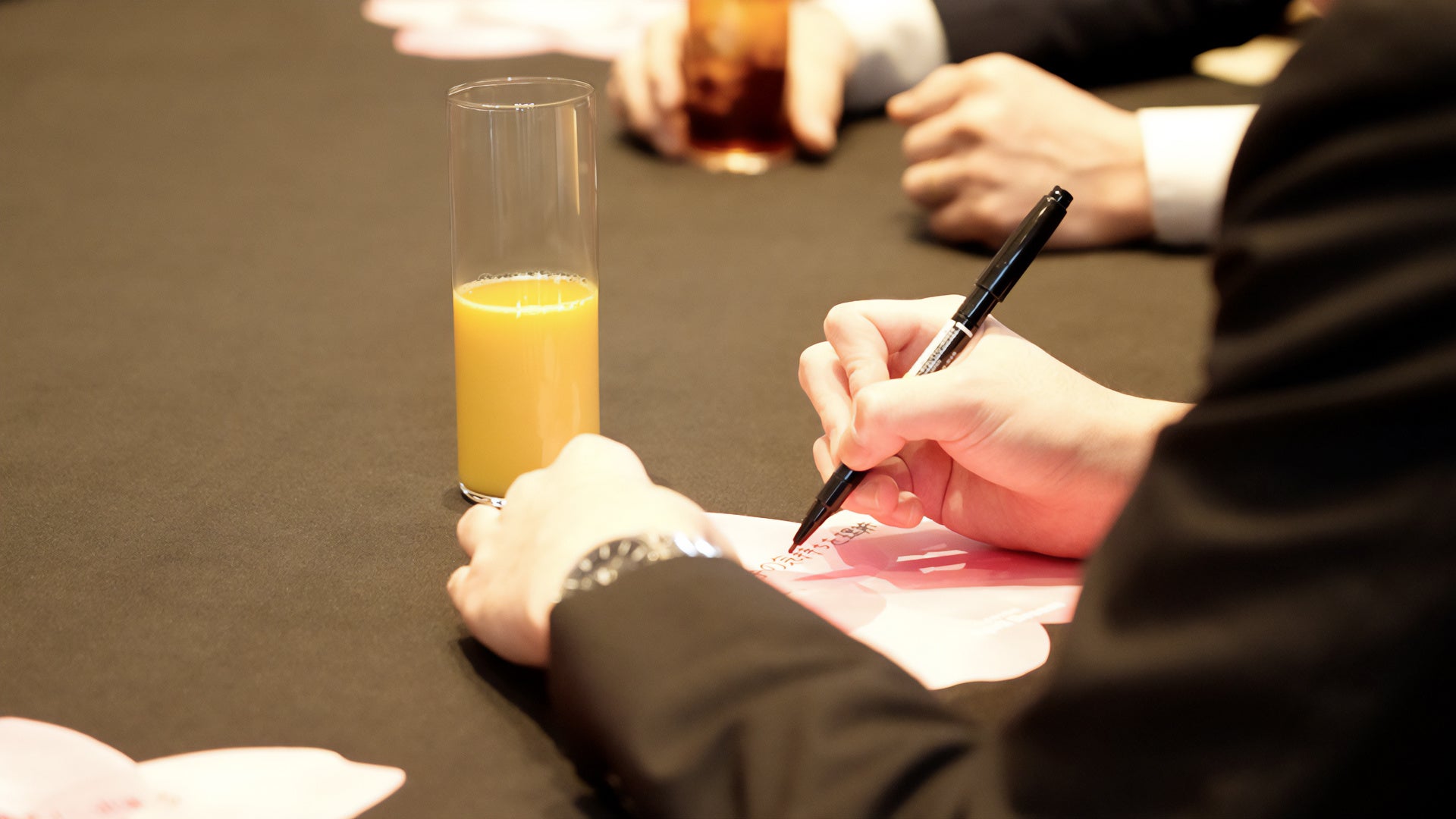 また、式典中にはApril Dream Projectの取組として配布した桜のモチーフに、新入社員一人ひとりが「夢」を綴りました。