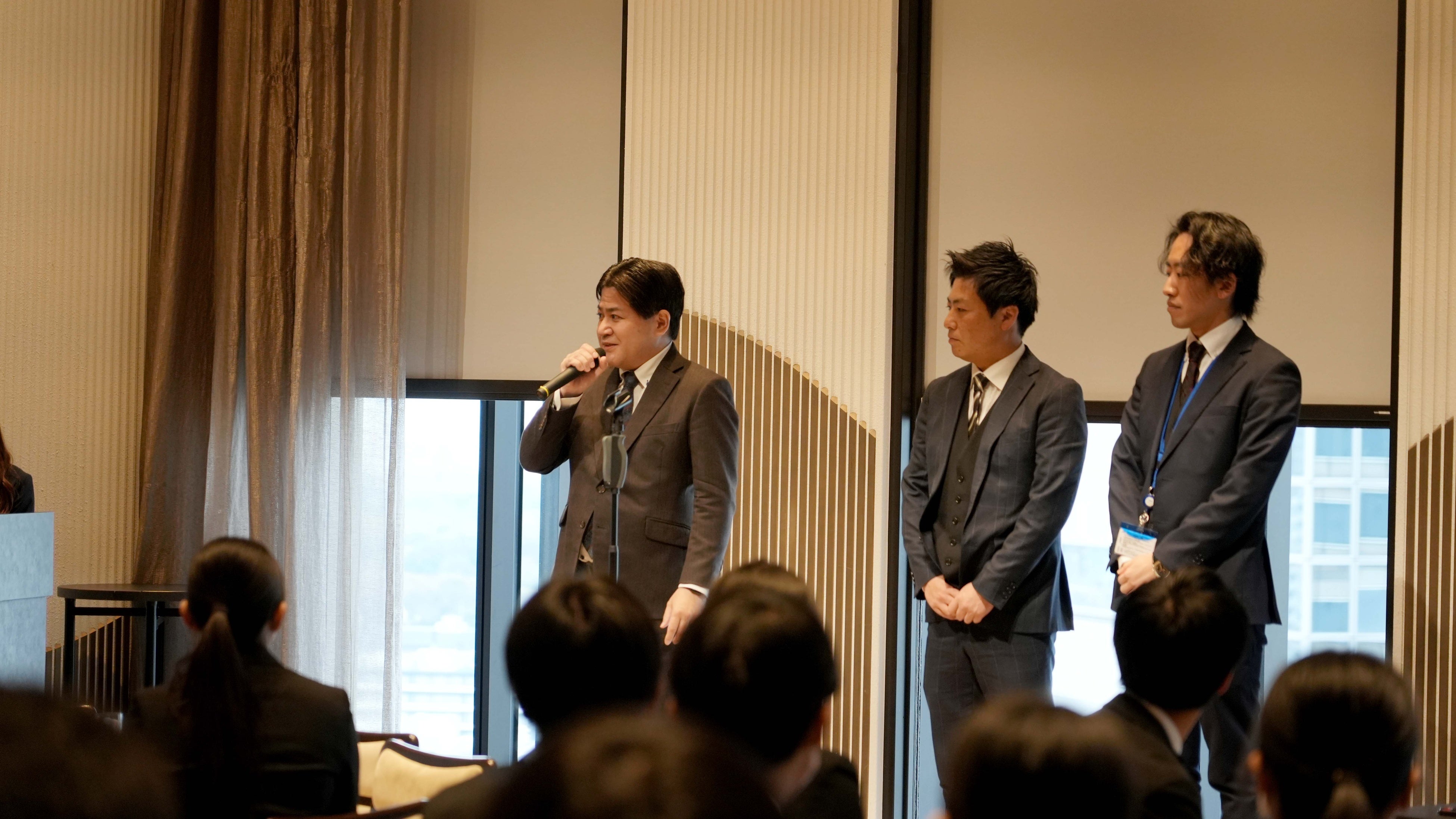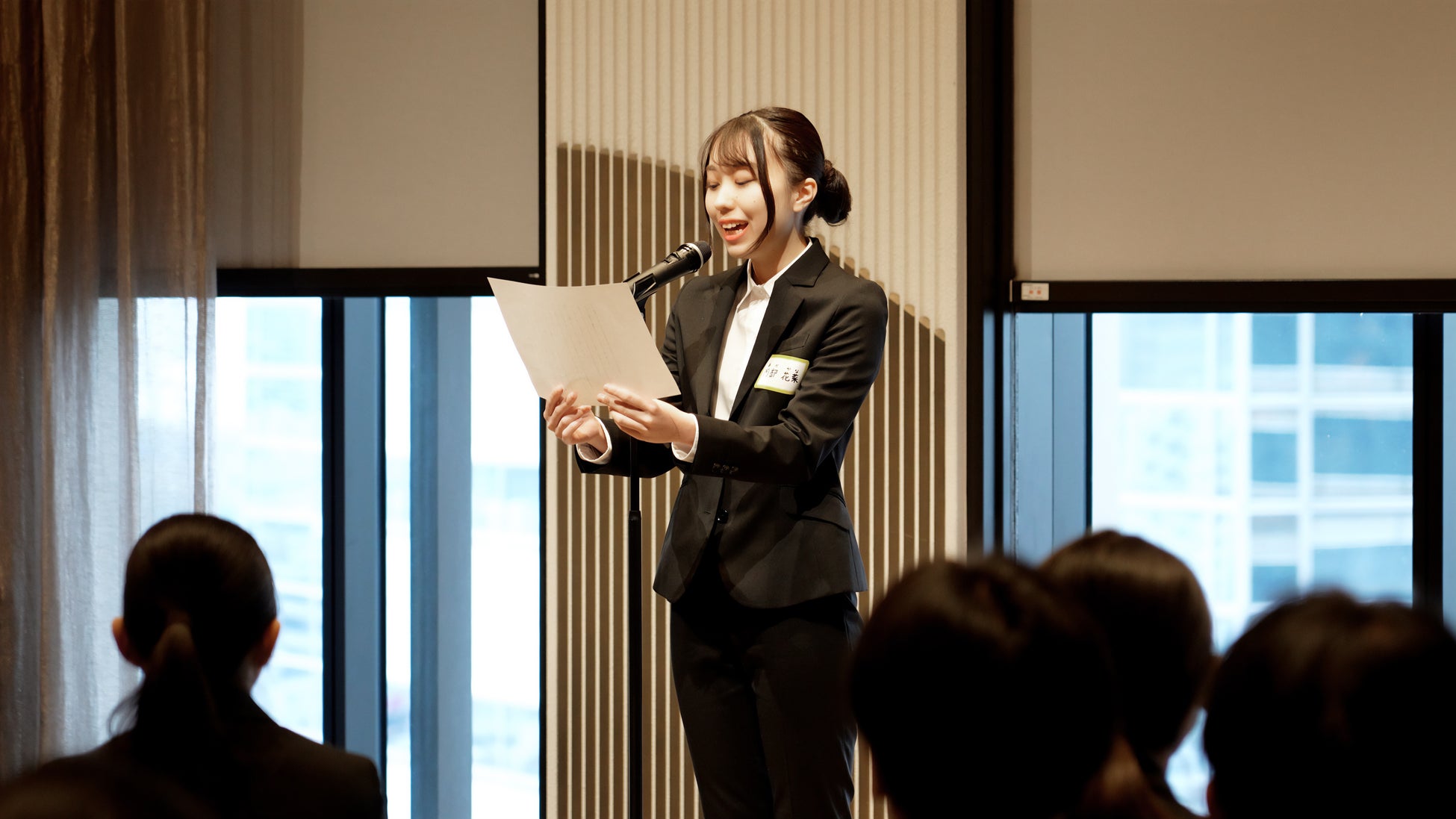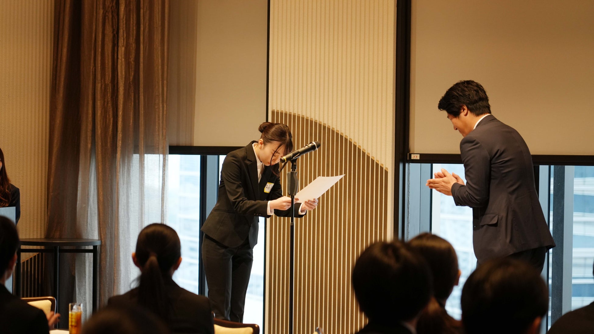 また、代表取締役 林 正和や幹部社員により祝辞が述べられ、新社会人としての門出を祝福しました。