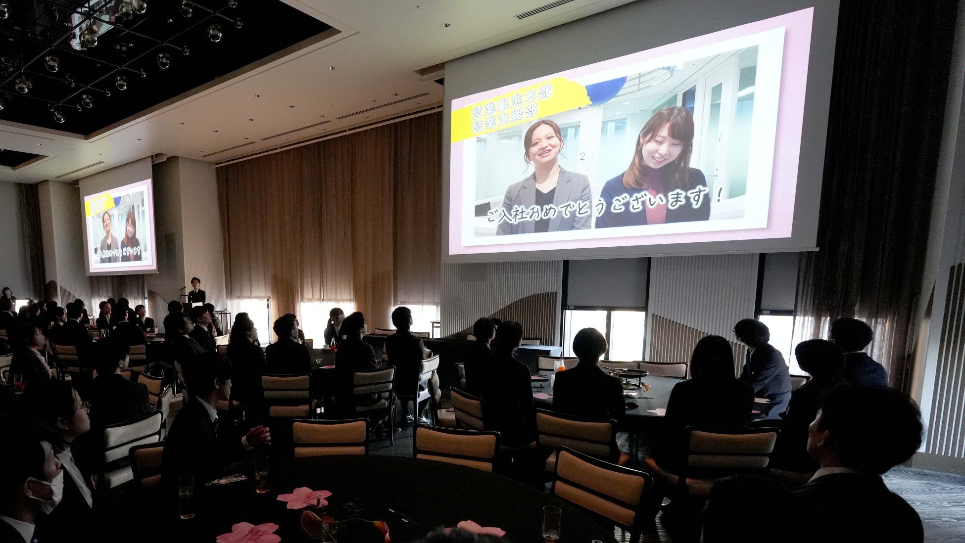 2024年の入社式では、「次の感動も、私たちと」というテーマのもと、新入社員を歓迎しました。