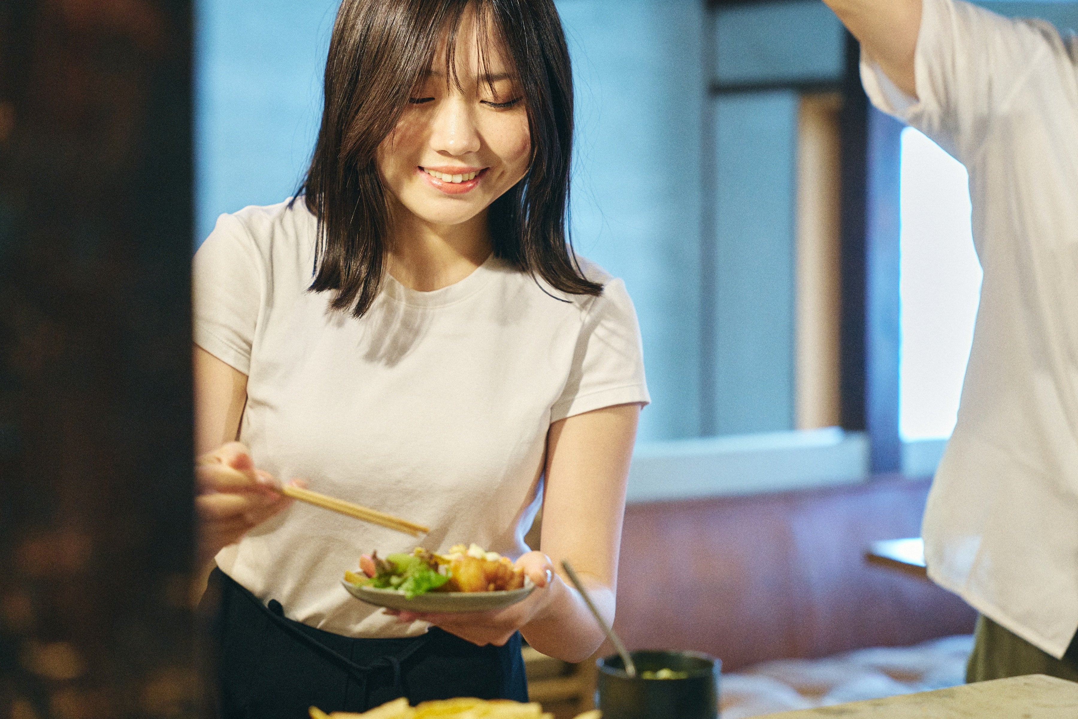 「ricont(リコント)」は、福岡市西区旧唐津街道沿いの福岡市登録文化財である150年の歴史を持つ古民家を改装し、柱や梁・天井は当時のままに、壁や床をシンプルに仕上げた歴史と現代が融合した新しい空間で、姪浜や糸島の素材を使用した本格スペイン料理とワインを気軽にお楽しみいただけるスペイン料理レストランです。歴史を刻んできた柱や梁、有田で作られた器や美しく輝くグラスと料理が主役となるよう、店内はあえてシンプルな空間に仕上げました。建物・食・器のコントラストをぜひお楽しみください。