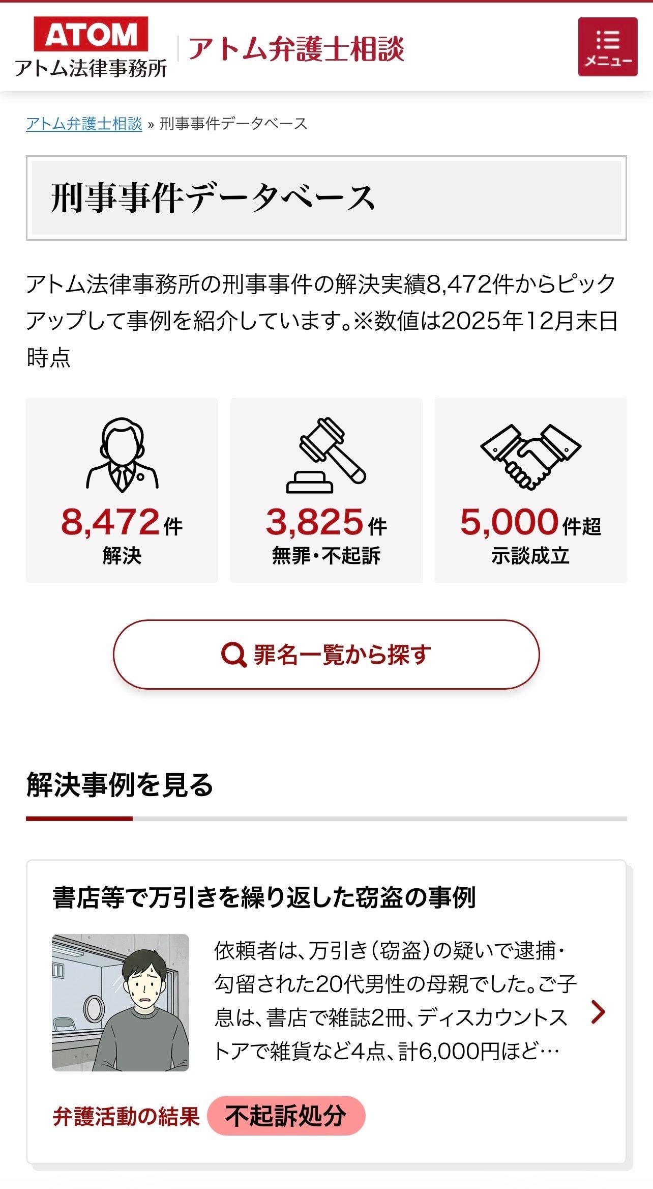 アトム法律グループ、刑事事件の「解決事例データベース」を大幅リニューアル