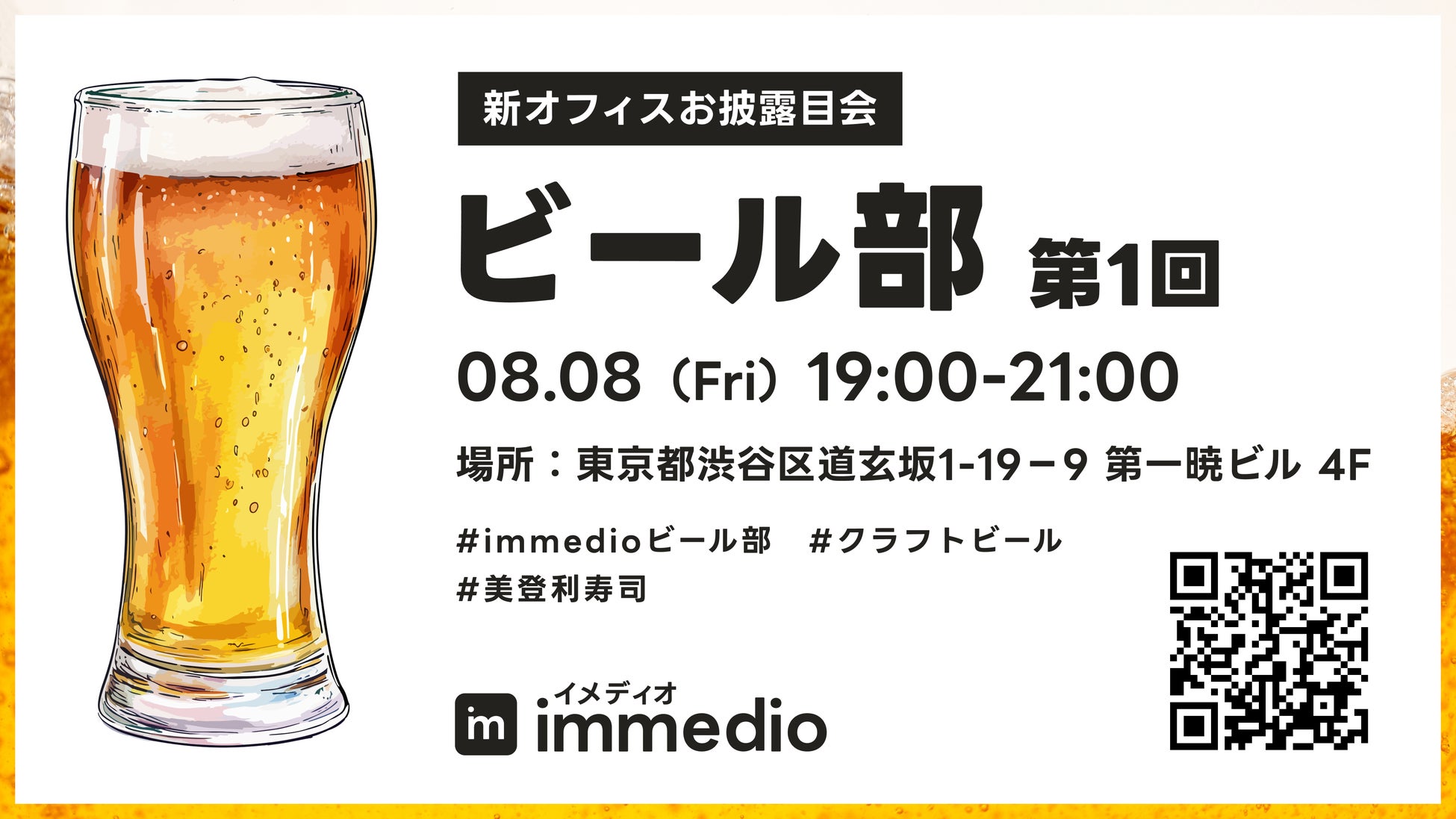 immedioでは社員とお客様や採用候補者がカジュアルに交流できる機会として、ビール部という活動を月1回開催して参ります。