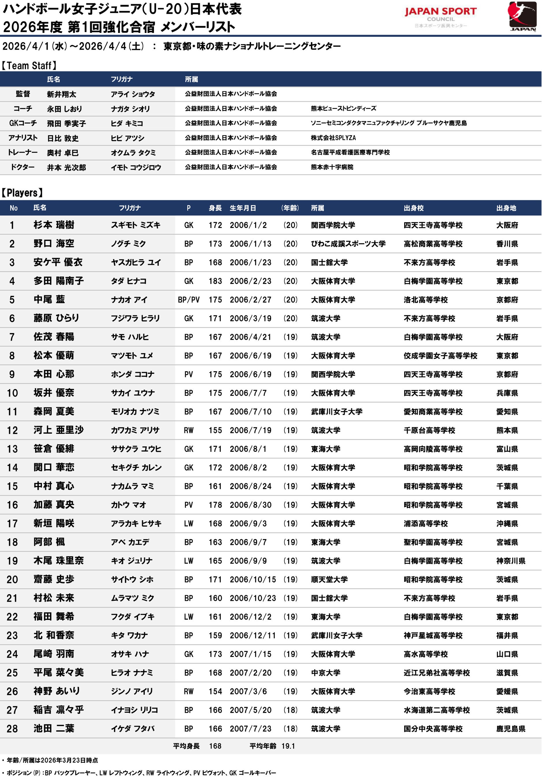 公益財団法人日本ハンドボール協会は、2026年6月24日から中国で開催される「第25回IHF女子ジュニア(U-20)ハンドボール世界選手権」の組み合わせが決定しましたのでお知らせいたします。