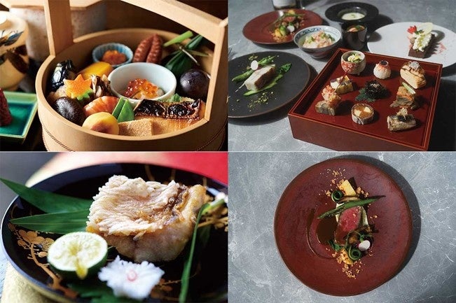 【手をけ料理】 人間国宝・中川清司氏作の手桶に、季節の京料理を十七品盛り込んだ名物料理