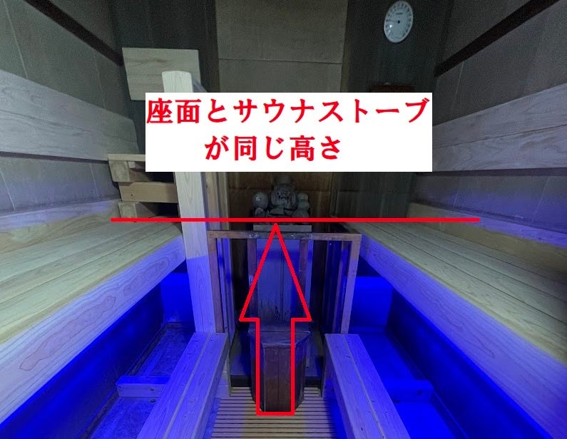 その名も『勇者の椅子』。通常のベンチ席と比べ、もう1段高い位置にあり、ロウリュで発生した蒸気をダイレクトに浴びることができます。高温サウナ好きには特にオススメの1席となっておりますので、ぜひご体験ください。