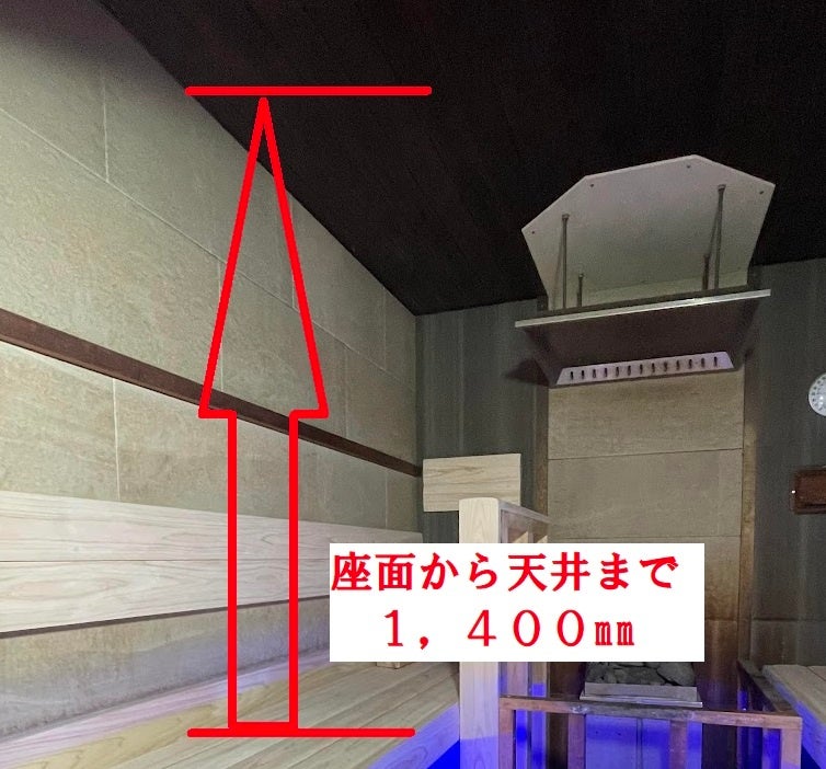 *座面から天井までの高さ1,400mmが、ロウリュの効果を最大限引き出します。
