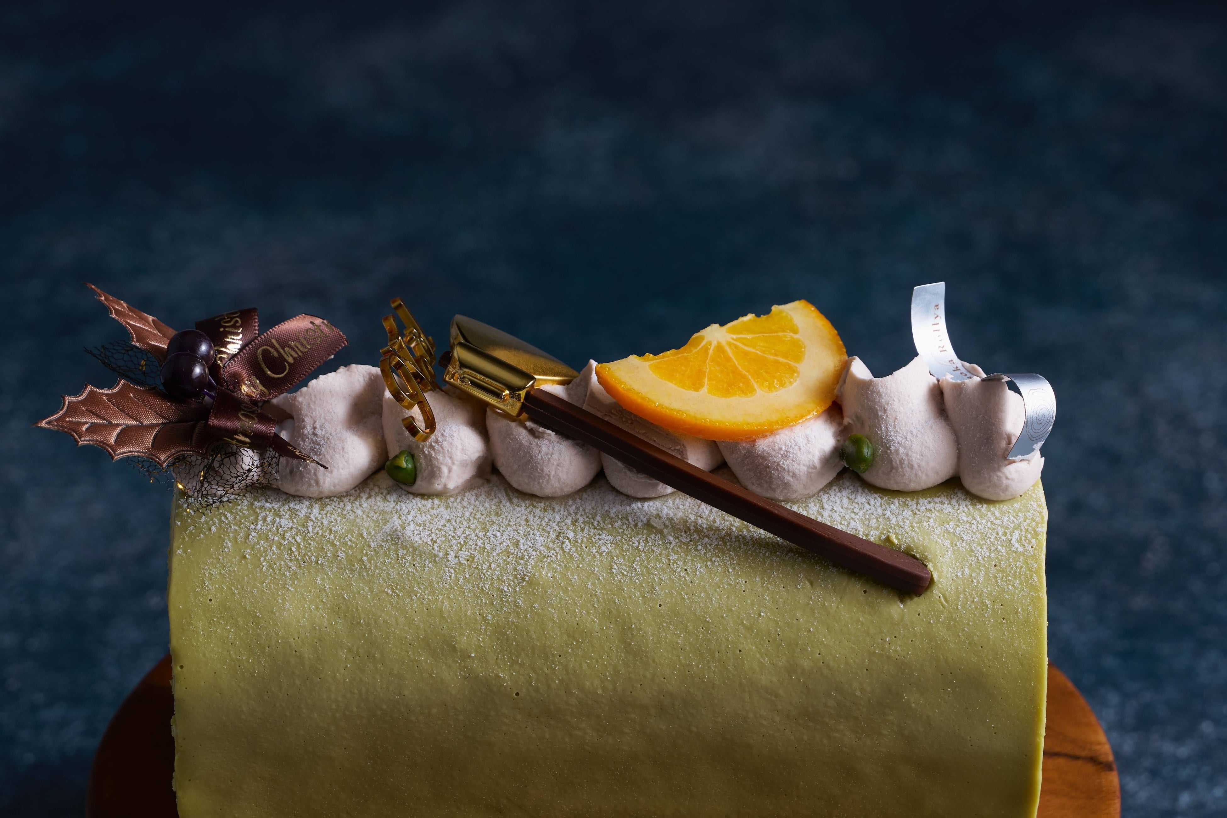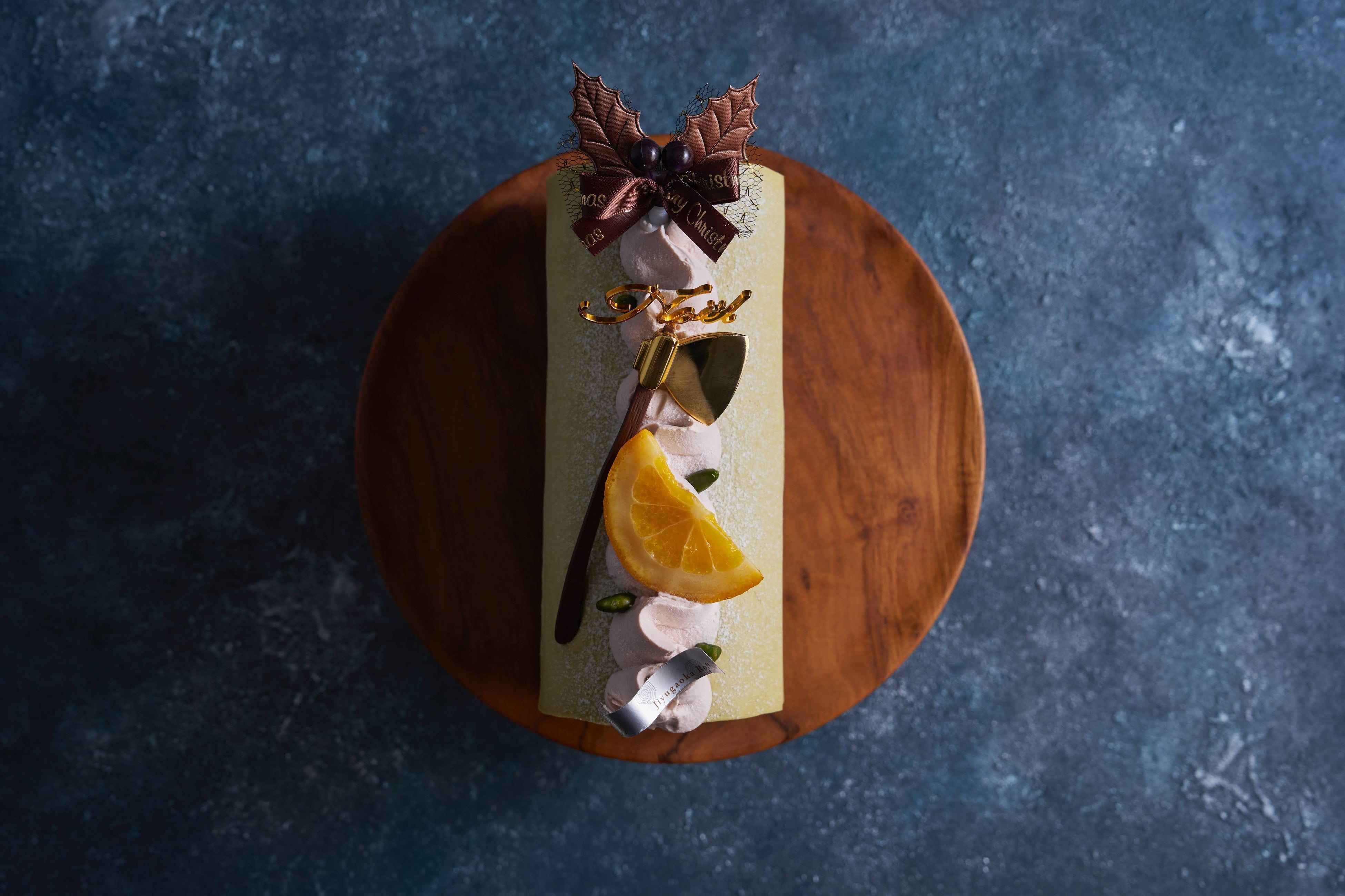 甘酸っぱいオレンジのジュレ、オレンジが香るショコラのムースを巻いたクリスマス限定のロール。