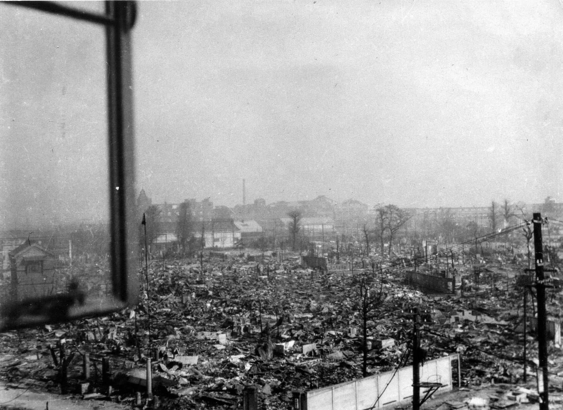 この写真は川崎大空襲から10日後に憲兵の目を盗んで川崎市役所3階からひそかに撮られた。(撮影:昭和 20(1945)年4月25 日)「川崎市平和館提供」