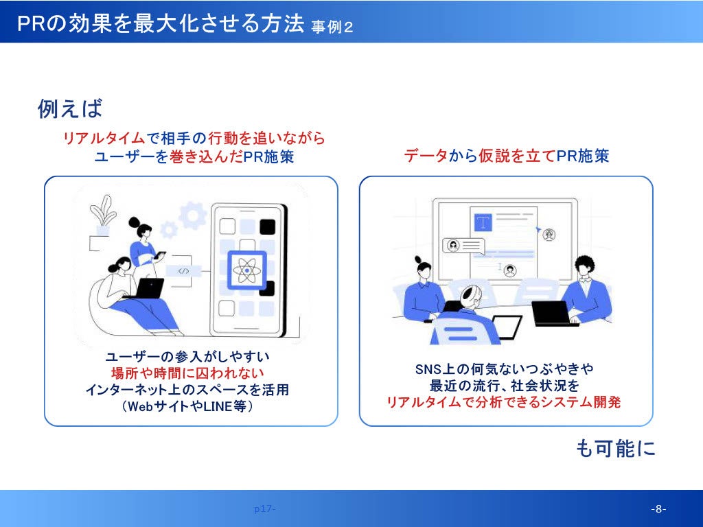 PRや開発を活用したビジネスの運営をお考えの方におすすめの内容です。