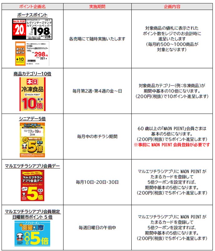 「WAON POINT」は全国で1億人以上の会員を有するポイントサービスであり、幅広い業種・業態の提携企業にてご利用いただけます。他店でためた「WAON POINT」を、マルエツでよりおトクにご利用いただくことも可能です。ぜひこの機会に、マルエツで「WAON POINT」を使ったおトクな