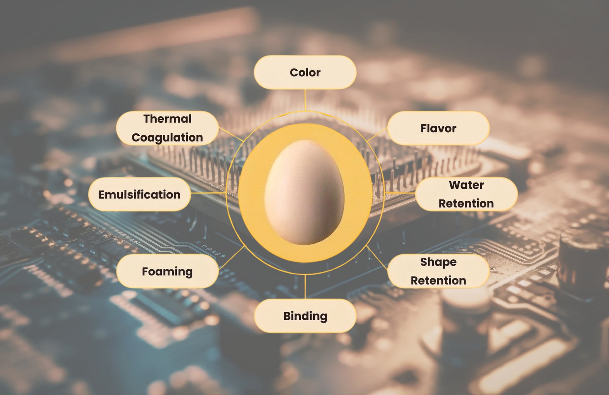 卵は起泡性、ゲル化、乳化など多様な機能を持つ食品素材であり、菓子、パン、加工食品など幅広い食品において欠かせない役割を担っています。卵は味や栄養だけでなく、物性の付与など、製品の品質や製造を支える基盤的な素材として、いわば世界中の食を支えるインフラ的な存在といえます。