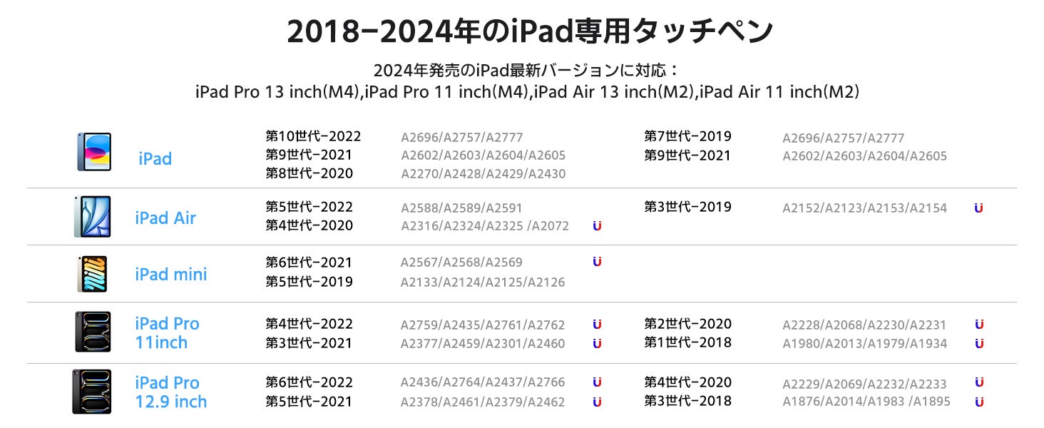 対応モデル:iPad (第6/7/8/9/10世代)、iPad Pro (第3/4/5/6世代)、iPad Pro 11インチ、iPad Air (第3/4/5世代)、iPad mini (第5/6世代)