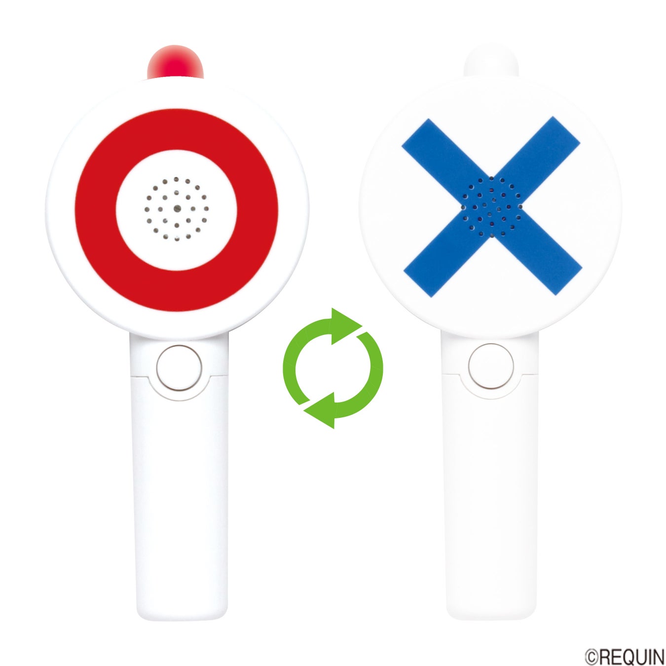 バツを相手に向けてボタンを押すと、「ブ~♪」と音が鳴ります。