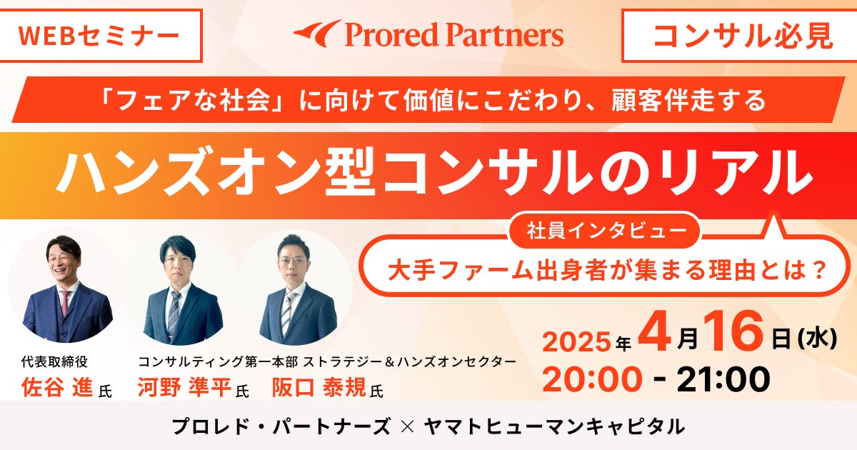 【4/16開催】「フェアな社会」に向けて価値にこだわり、顧客伴走する。ハンズオン型のコンサルティングのリアル |プロレド・パートナーズ × ヤマトヒューマンキャピタル