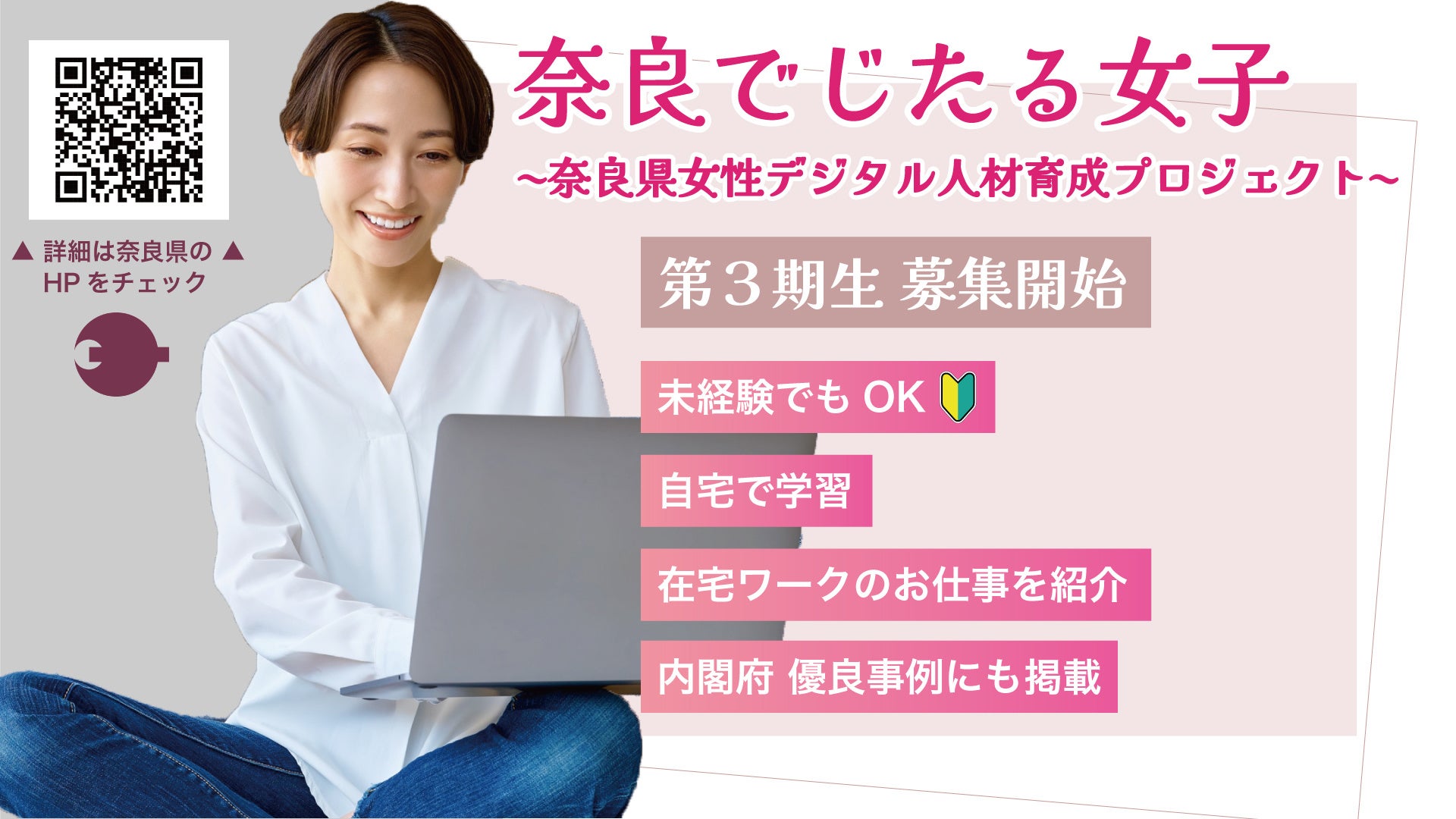 奈良県と連携協定を締結している「でじたる女子活躍推進コンソーシアム」が、デジタル技術の教育から就労支援までを一貫して行うプロジェクトの第3期生の受講者を募集中!