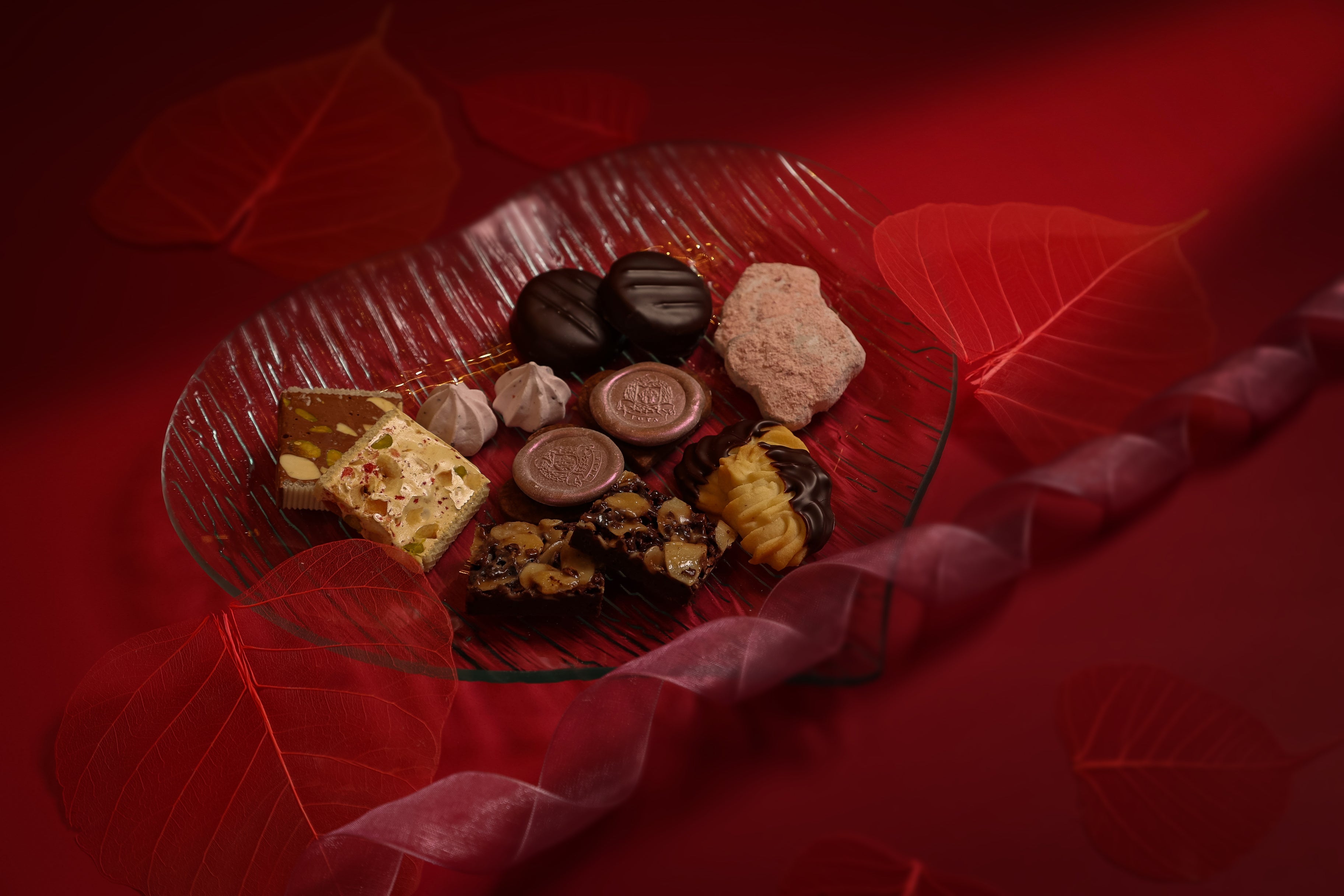 ヌガー、ボンボンショコラ、ロッシェなどの豪華な詰め合わせ。