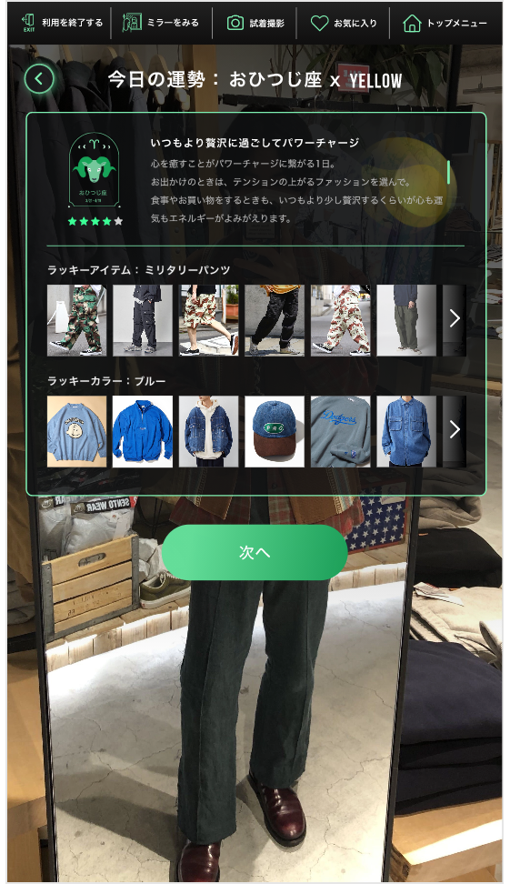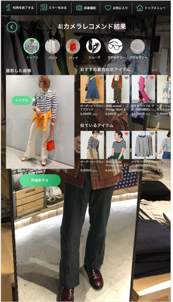②AIカメラでお客様のコーディネートアイテムを識別し、おすすめの商品を提案